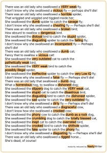 Here is Joey Marianer singing NastyWriter’s version of ‘There Was an Old Lady Who Swallowed a Fly‘: