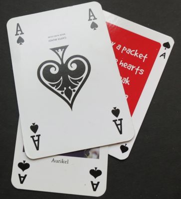If I’d thought about it, I’d have started on the ace of hearts this week instead of the ace of spades. But a spade looks a lot like a heart when upside down, and there were a few other references to hearts on my aces of spades. It’s not a real heart, but it is a real artificial heart.